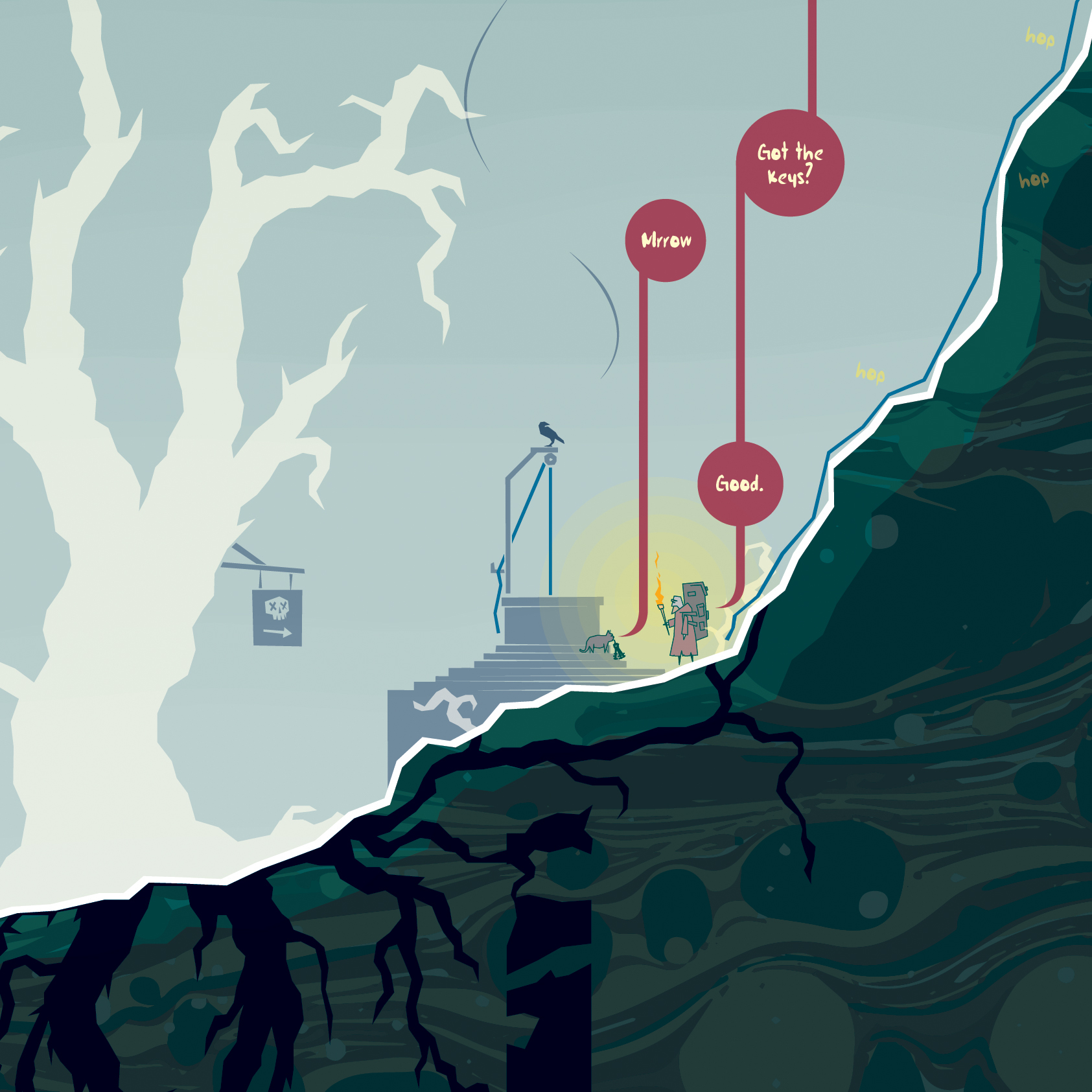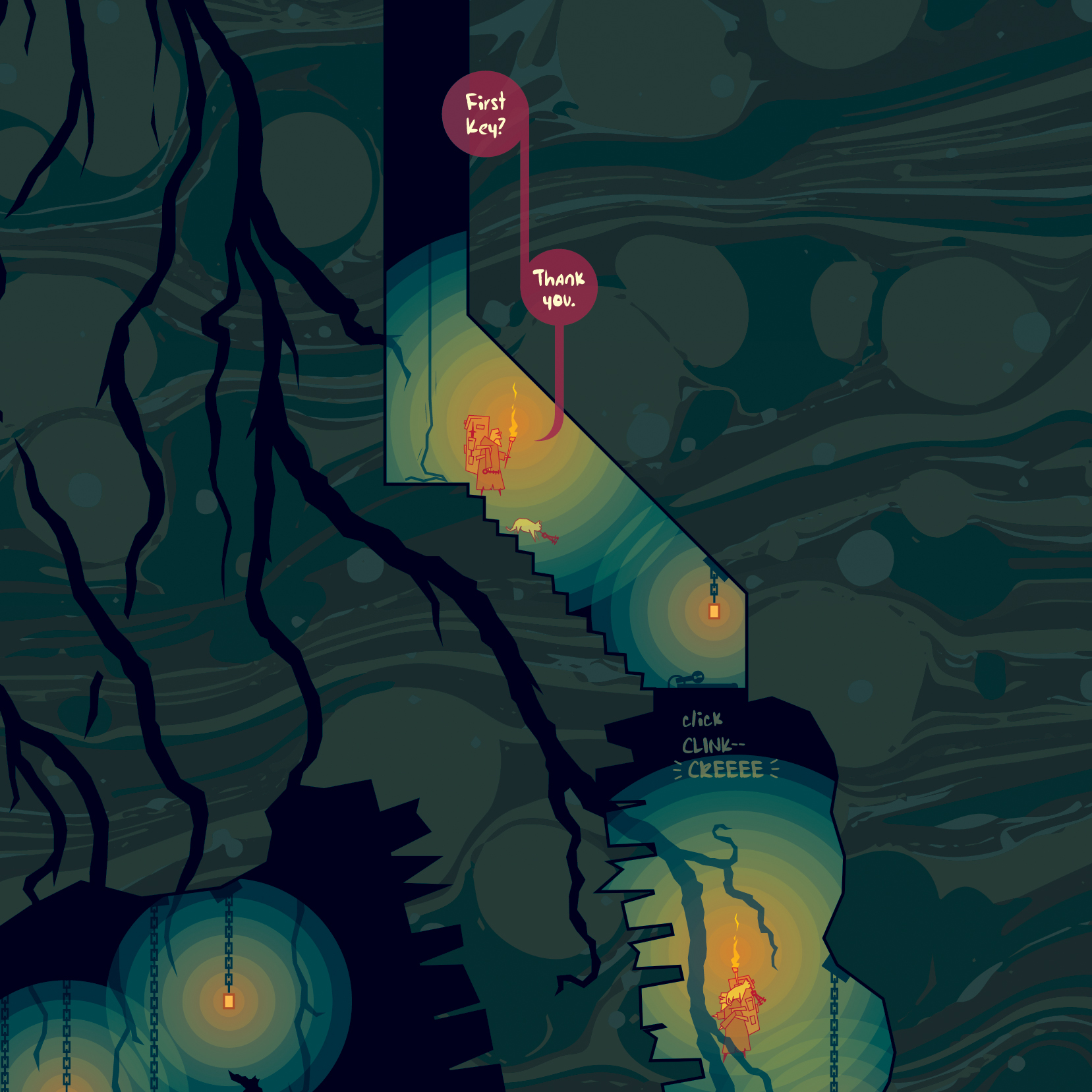 Led only by a cat, a ghostly woman, and the light of his own torch, the old caretaker begins his routine descent down the well. Follow their journey through this continuous landscape into the mysterious depths below.